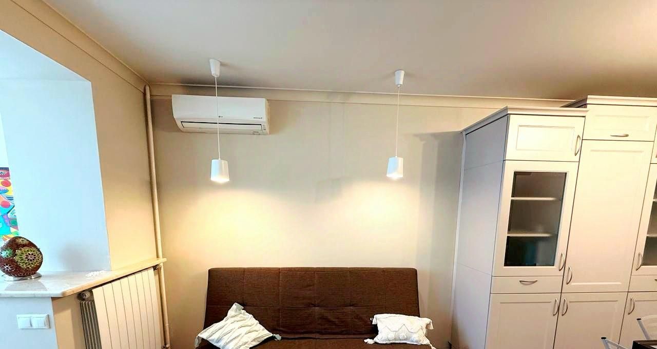 Дом кирпичный. Сдаётся еврооднушка без балкона. Совмещённая кухня-гостиная и изолированная спальня с раздвижные дверями. Квартира укомплектована необходимой мебелью и бытовой техникой. В наличии шкаф-купе,два шкафа у окон, комоды,диван,кровать. Оборудована гардеробная комната. Вся бытовая техника- кондиционер, ПММ, стир.машина,холодильник. Санузел совмещённый,душевая. Депозит можно разделить на 2 платежа. Оплата свет,вода.