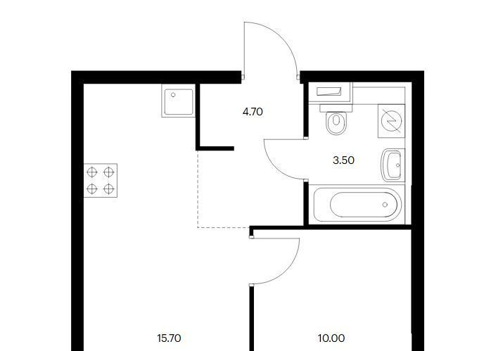 Это идеальное пространство для семейной пары или семьи с ребенком. Просторная кухня-гостиная площадью 16 м² плавно переходит в уютную отдельную спальню (10 м²), создавая ощущение свободы и уюта одновременно. Общая площадь квартиры составляет 34 м².