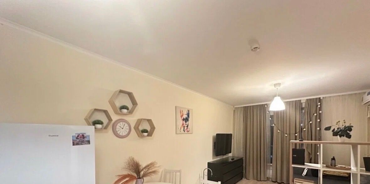 Предлагаем в аренду уютную однокомнатную квартиру с евроремонтом в современном доме. Общая площадь квартиры 34 кв. м, жилая площадь 27 кв. м. Квартира находится на 10 этаже 24-этажного дома, построенного в 2019 году. Высота потолков составляет 2,7 метра, окна выходят во двор, что обеспечивает тишину и спокойствие.
