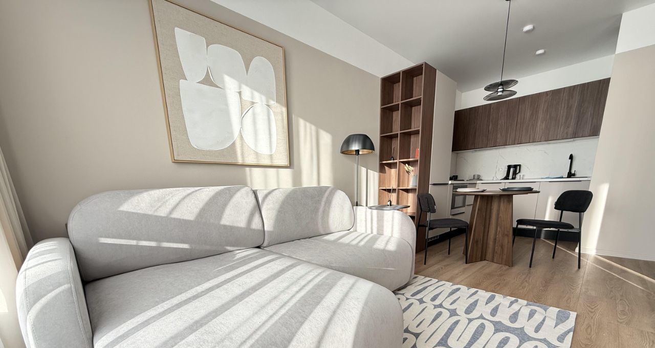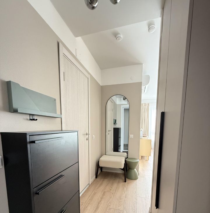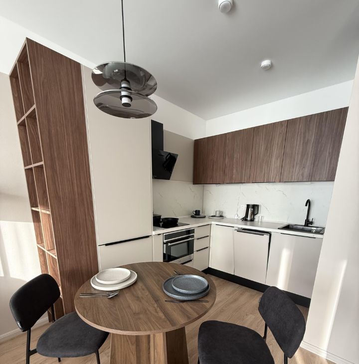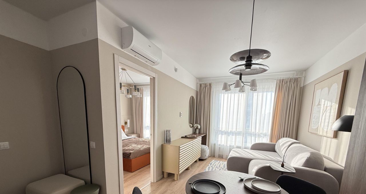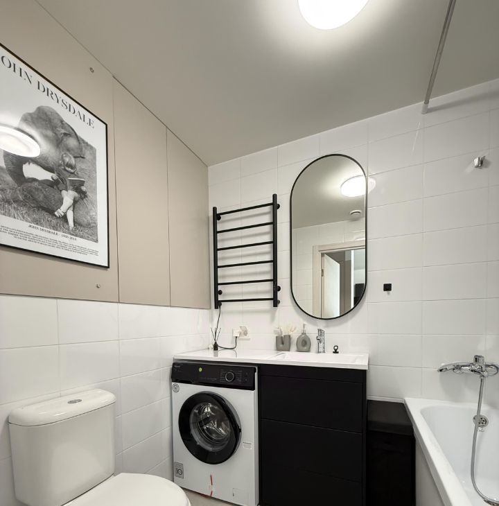 Квартира полностью готова для комфортного проживания. В комнате и на кухне — современная мебель, обеспечивающая уют и удобство. Ванная комната оборудована ванной, чтобы можно было расслабиться после долгого дня. Из техники в наличии: кондиционер, холодильник, посудомоечная и стиральная машины — всё, что нужно для комфортной жизни.