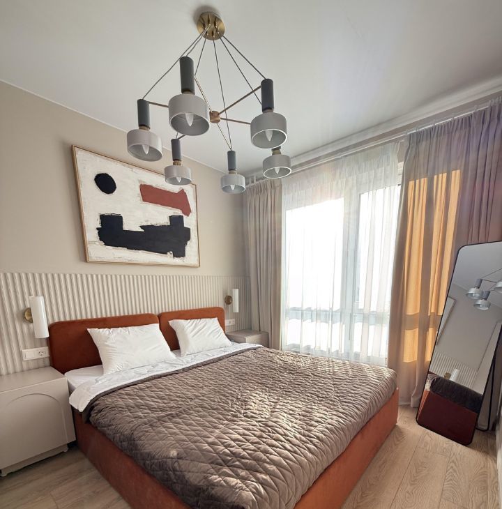 Сдаётся стильная однокомнатная квартира с дизайнерским ремонтом в новом доме, построенном в 2025 году. Общая площадь — 38 кв. м, просторная кухня-гостиная 18 кв. м, что идеально для приёма гостей или уютных семейных ужинов, спальня-11 кв.м. Квартира расположена на 17 этаже 24-этажного дома.