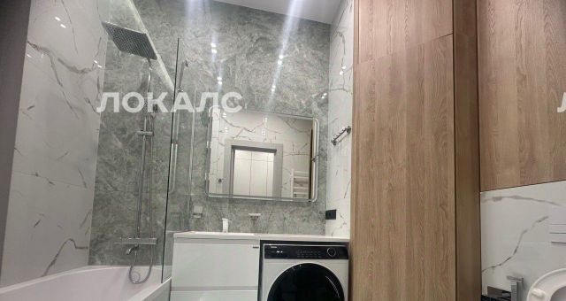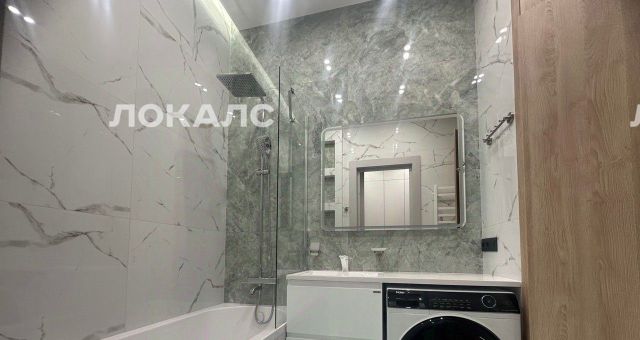 В ванной стиральная машина Haier с сушкой, проточный водонагреватель Electrolux на случай отключения горячей воды, смесители с термостатом, гигиенический душ, ванна и раковина из литиевого мрамора, приятная подсветка в ванной для релакса, система Нептун для автоматической блокировки воды в случае протечек.