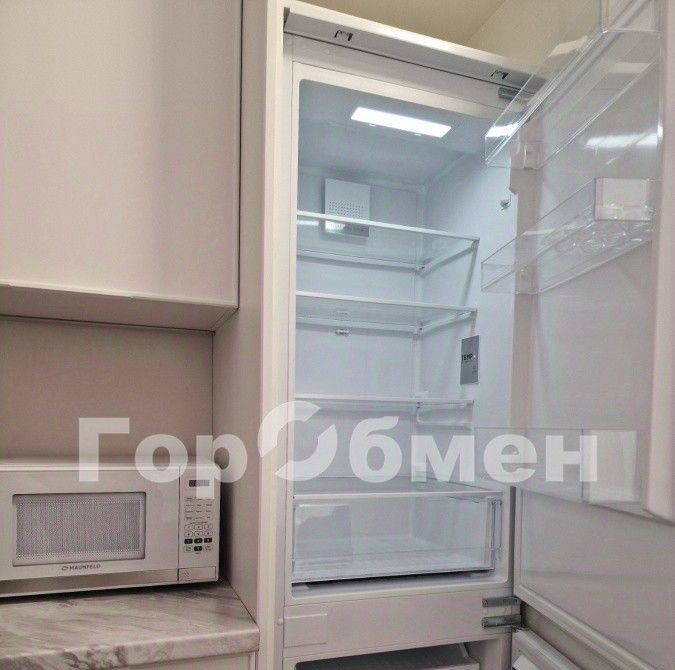 Бытовая техника: холодильник, варочная панель, духовой шкаф, вытяжка, микроволновая печь, стиральная машина, чайник.