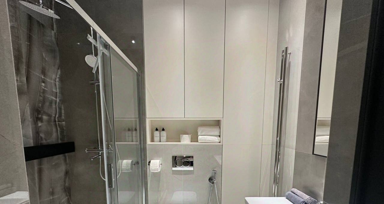 - совмещенный санузел душевой кабиной, стиральной машиной и гигиеническим душем.