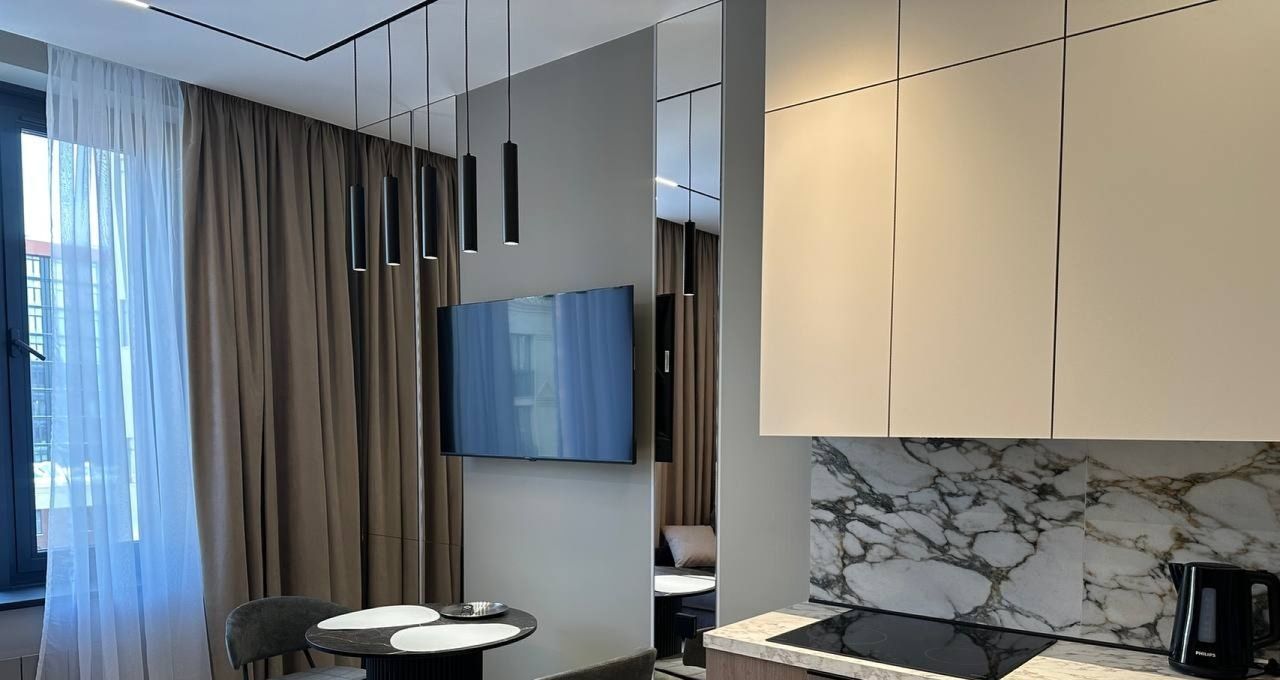 Id 60097. Сдается стильная евро двухкомнатная квартира с дизайнерским ремонтом в жилом комплексе бизнес-класса "Зиларт". Удобная планировка с просторной кухней-гостиной, изолированной спальней и постирочной. Дом находится на первой береговой линии.