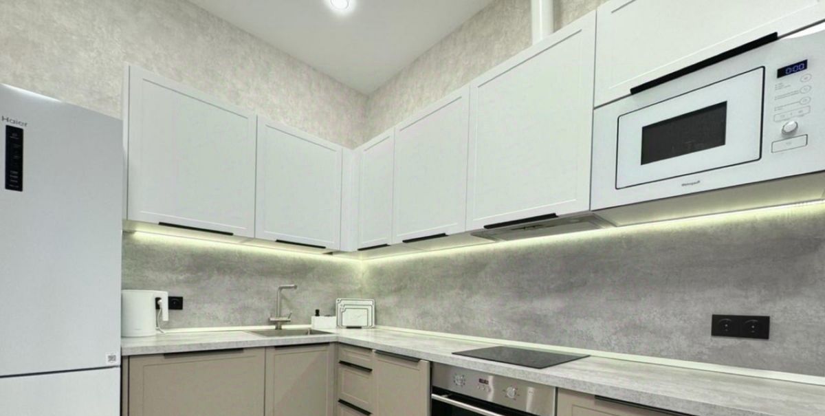 В интерьере применены качественные материалы, и квартира полностью готова к комфортной жизни: в квартире есть вся необходимая мебель и техника — холодильник, стиральная машина, посудомоечная машина, теплый пол, кондиционеры и телевизоры в каждой комнате, плита.