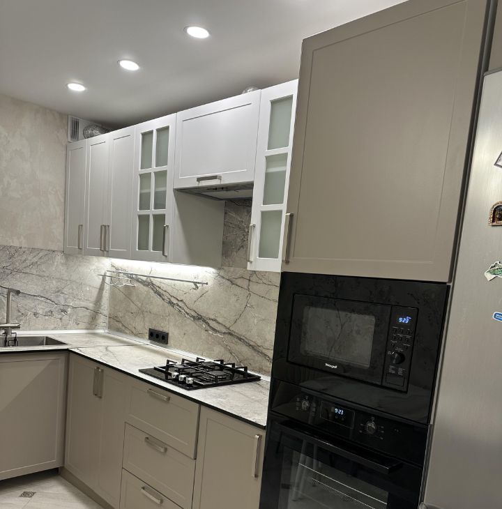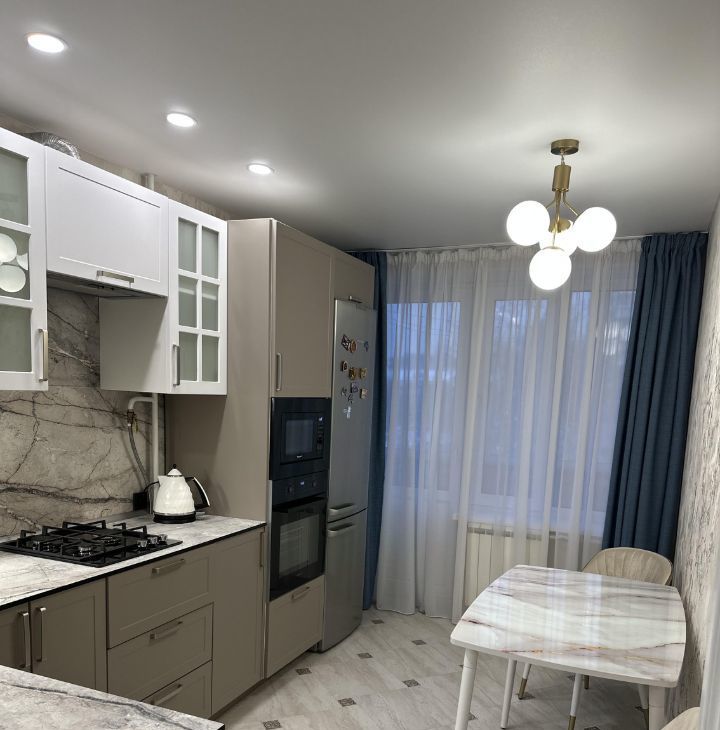 В квартире сделан евроремонт кухни, санузла. Квартира полностью готова для комфортного проживания. В комнате и на кухне есть вся необходимая мебель. В кухне установлена современная техника: холодильник, посудомоечная машина, телевизор, микроволновая печь, духовой шкаф и стиральная машина. Из кухни есть выход на балкон, окна выходят на улицу.