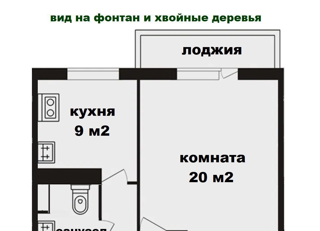 Сдается уютная квартира с мебелью и бытовой техникой в хорошем состоянии, окна выходят на фонтан и хвойные деревья.
