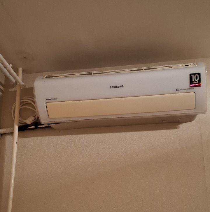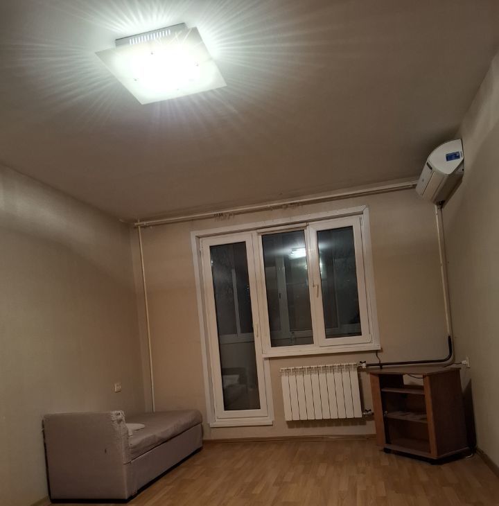 В комнате шкаф,тумба под аппаратуру,кушетка,кондиционер. Спальное место обсуждается.