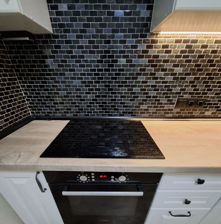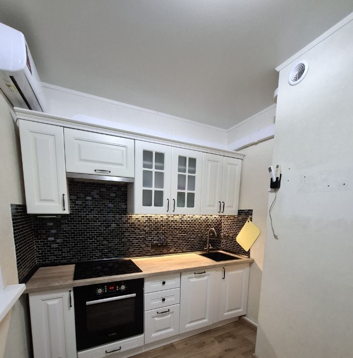 На кухне гарнитур,варочная панель+духовой шкаф, холодильник (новый).В с/у стиральная машина (новая),кондиционер.