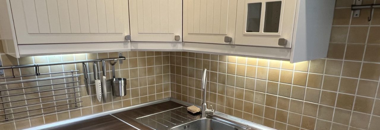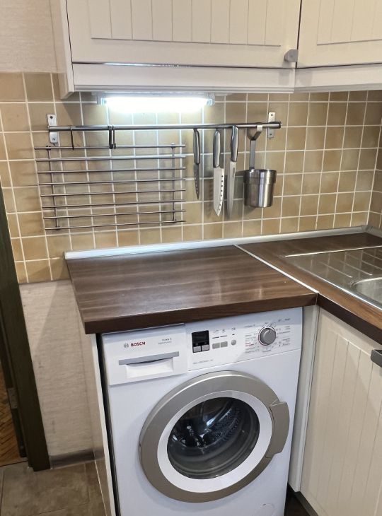 • Техника: Кухня полностью укомплектована встроенной техникой Bosch (газовая панель, духовой шкаф, стиральная машина).