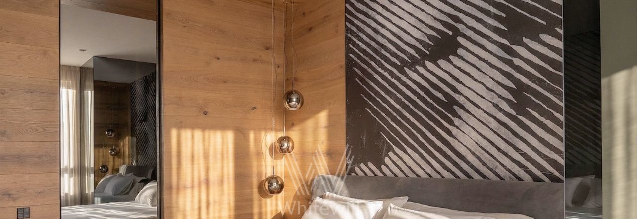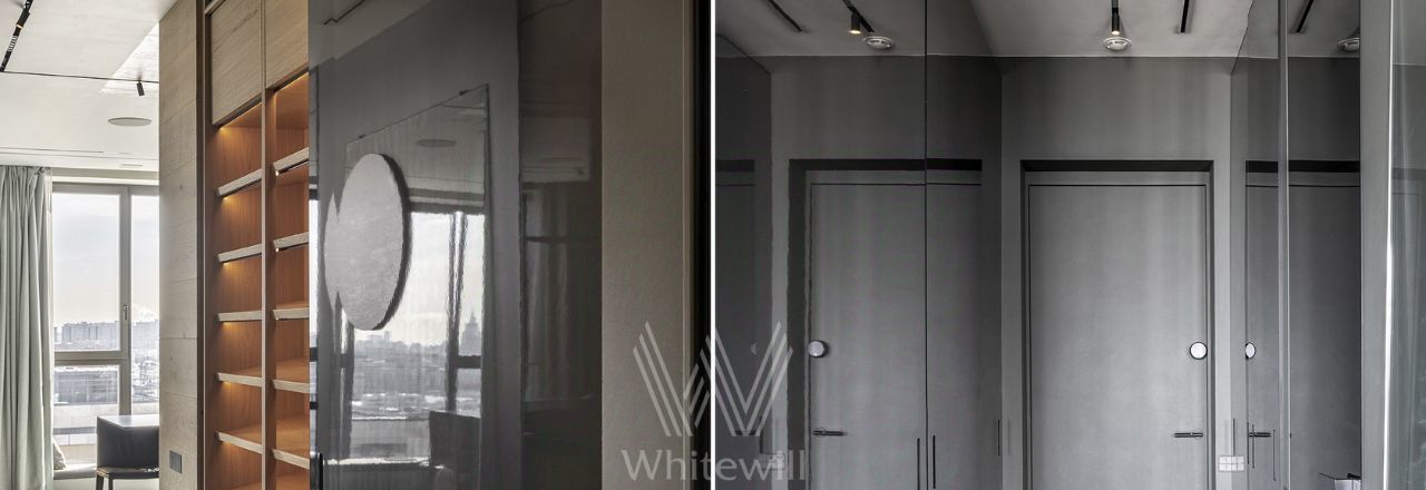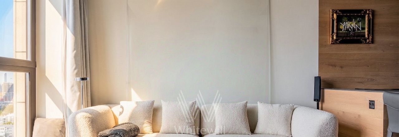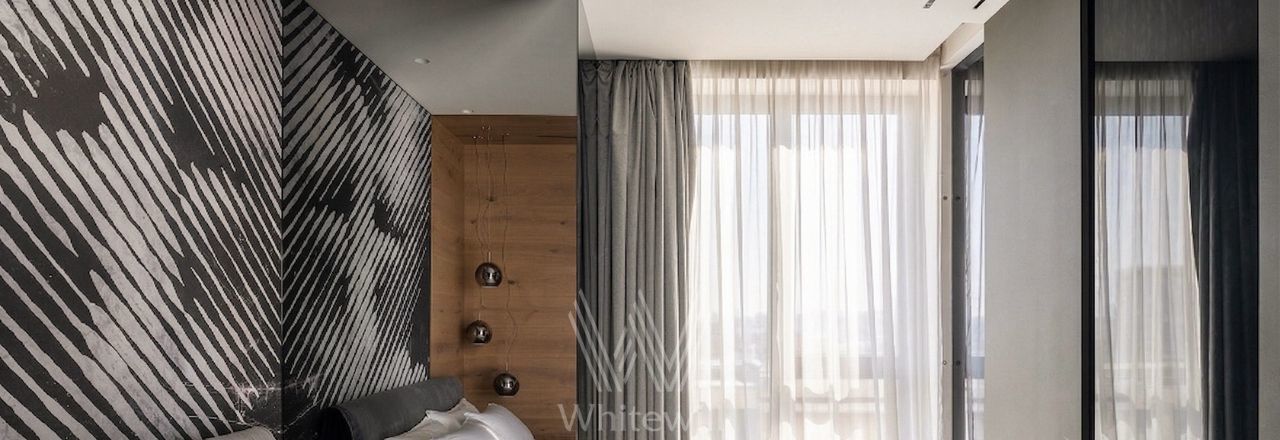 Квартира с 1 спальней общей площадью 55 м² в комплексе премиум-класса "РедСайд". Интерьер выполнен по авторскому проекту бюро Yodezeen в современном стиле. В отделке использованы широкоформатный керамогранит, натуральный шпон, паркет. Установлены стеклянные двери и перегородки Rimadesio, на полу уложены ковры ручной работы Jacaranda. Панорамные окна наполняют пространство светом и открывают вид на Москву.