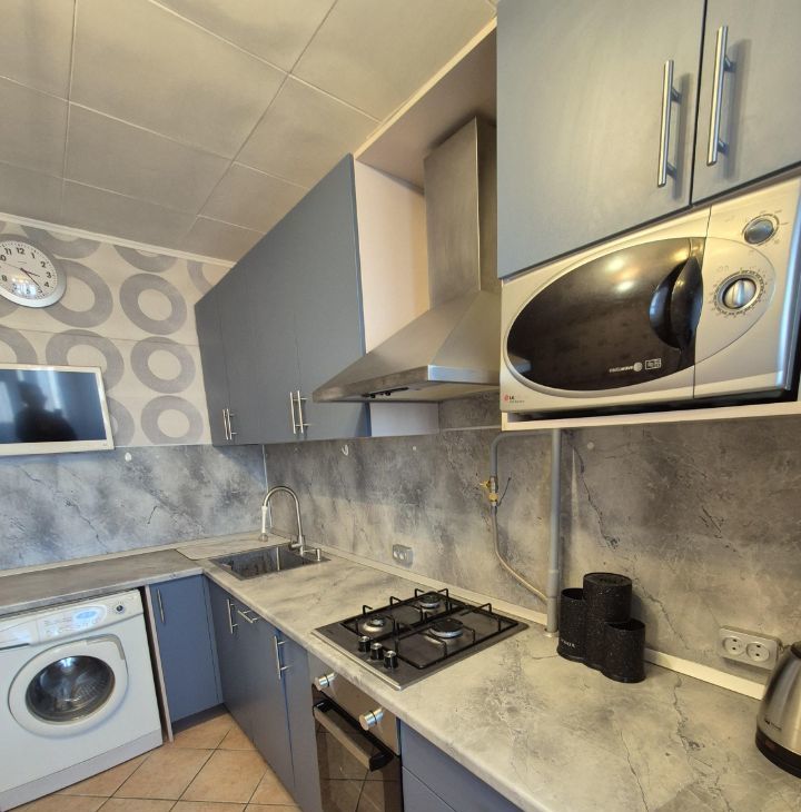 Квартира просторная со свежим ремонтом. Балкон остеклен с выделенной зоной отдыха. Кухня новая, имеется вся бытовая техника: посудомоечная, стиральная машины, микроволновка, телевизор, холодильник, вытяжка. В комнате двуспальная кровать. На фото нет матраца, его заказали новый.