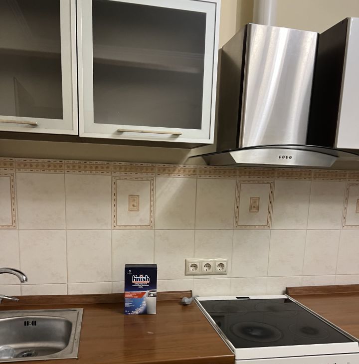Кухня оборудована:посудомоечная машина, холодильник, духовой шкаф, электрическая плита ,микроволновая печь ,утюг , гладильная доска.