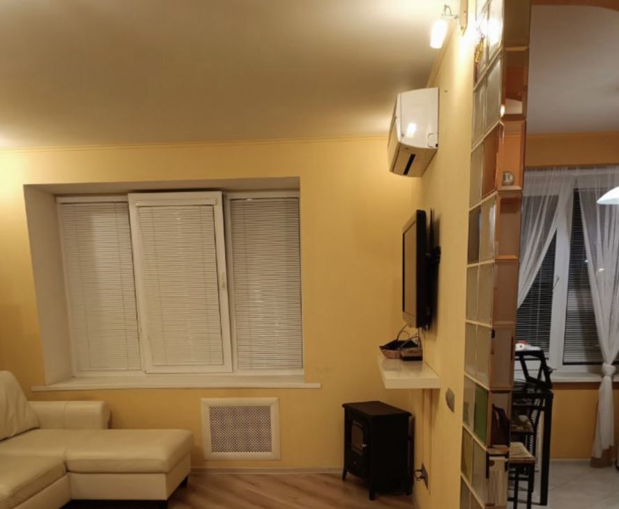В квартире сделан качественный ремонт, благодаря чему она выглядит свежо и ухоженно. Просторная комната и кухня полностью меблированы, поэтому можно сразу заехать и наслаждаться комфортом. В квартире есть всё необходимое для удобной жизни: кондиционер, холодильник, телевизор и стиральная машина. Окна выходят во двор, поэтому в квартире тихо и спокойно. Санузел совмещённый, оборудован ванной.