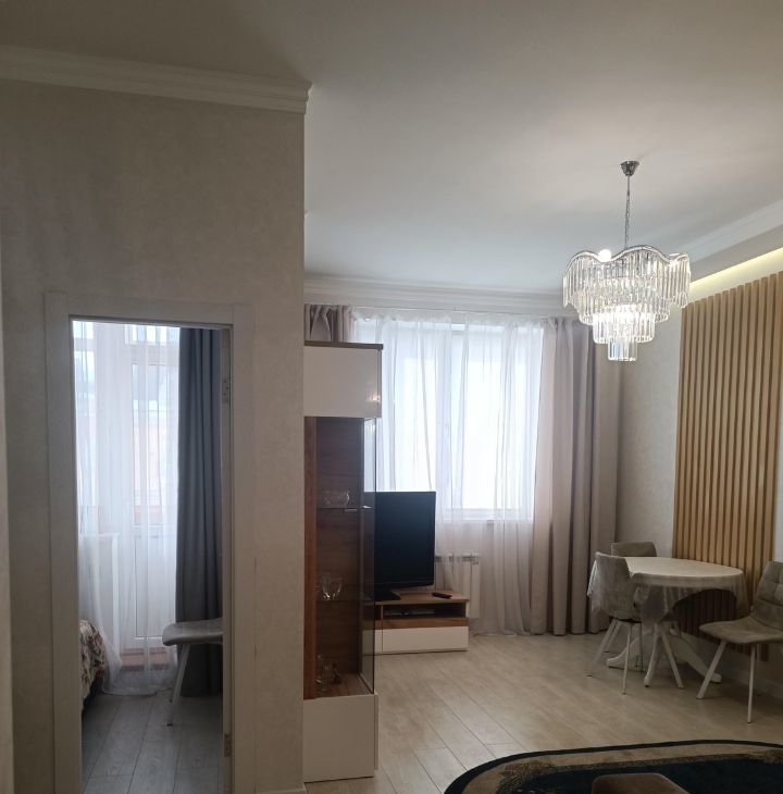 Строго без животных. Сдается просторная однокомнатная квартира с евроремонтом в современном доме 2014 года постройки. Общая площадь составляет 50 кв. м, из которых 30 кв. м — жилая, а 12 кв. м — уютная кухня. Квартира находится на 5 этаже 17-этажного панельного дома. Высокие потолки в 3 метра создают ощущение простора и света. Из окон открывается вид на улицу, а на балконе можно наслаждаться свежим воздухом.