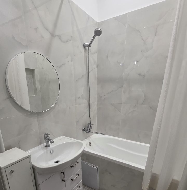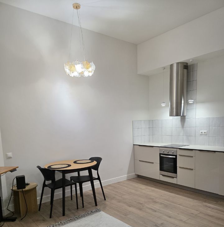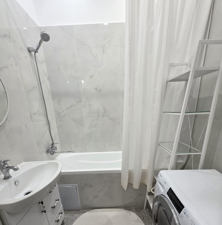 В квартире сделан современный евроремонт, что подчёркивает её комфорт и стиль. К вашим услугам вся необходимая мебель: удобная и функциональная кухня, обустроенная комната. Из техники в наличии кондиционер, холодильник, посудомоечная и стиральная машины — всё для вашего удобства. Санузел оборудован ванной, а окна выходят в тихий двор, что обеспечивает спокойствие и уют.