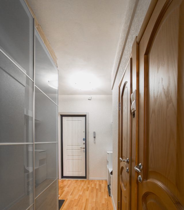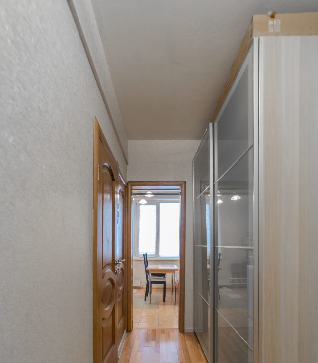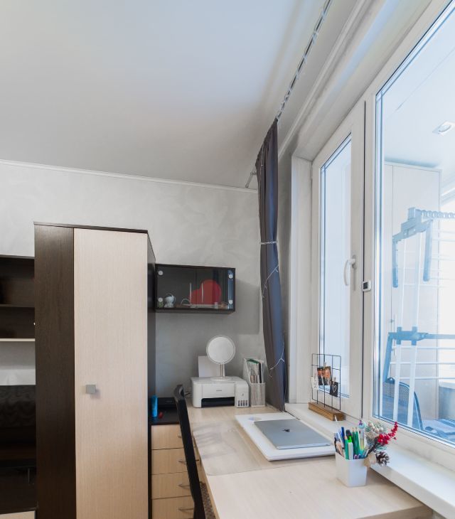 Светлая и просторная, полностью мебелирована, делалась под себя. Удобная рабочая зона. 3 шкафа для хранения вещей, раздвижной стол на кухне, складной диван с удобным матрасом.