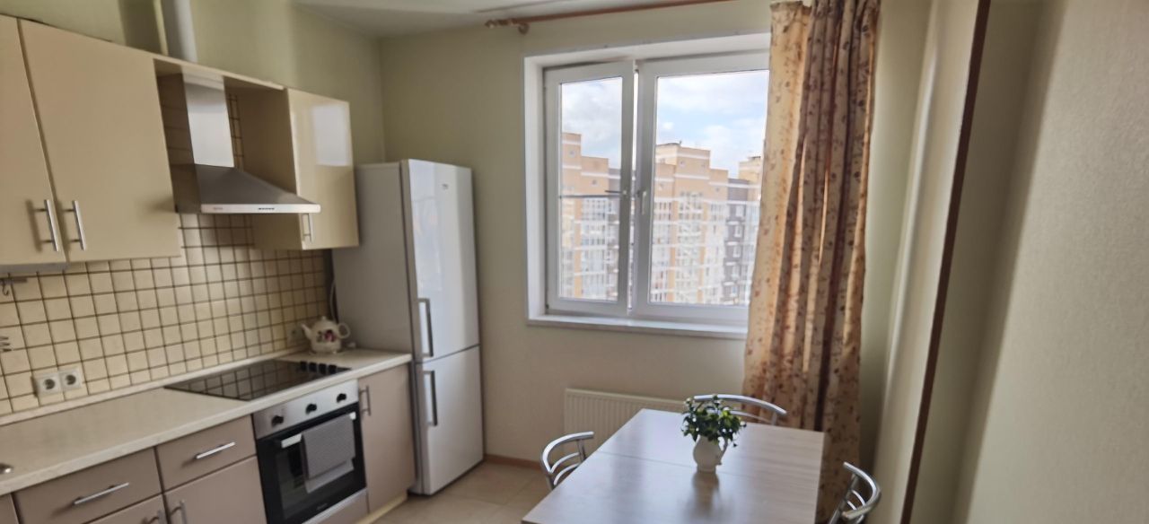 Татьянин Парк- дом комфорт класс. Мебель -кухонный гарнитур с бытовой техникой. В комнате двуспальная кровать, большой шкаф -гардеробная , ТВ, кондиционер. Панорамный вид с остекленного в пол балкона . Презентабельная входная группа. Развитая инфраструктура, рядом магазины "Лента", "Оби", "Перекресток". Облагороженный пруд. Большой лесопарк "Мещера". Шаговая доступность до метро.