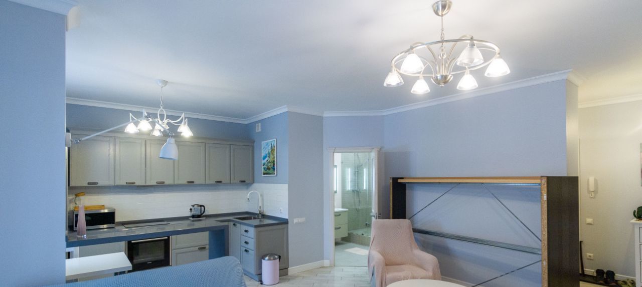 Готова к сдаче! Не разу не сдавалась. Студия - кухня-гостиная в одном пространстве. Есть двухспальная кровать (матрас будет куплен новый за счет арендодателя), двухместный раскладной диван. кресло со столиком, тв. Большая лоджия с панорамным остеклением на кухню и комнату. Выход на лоджию через двухстворчатые панорамные двери с панорамным освещением. Техника, бош и симнес, кондиционер, бойлер на случай отключения горячей воды. Встроенные шкафы в коридоре.