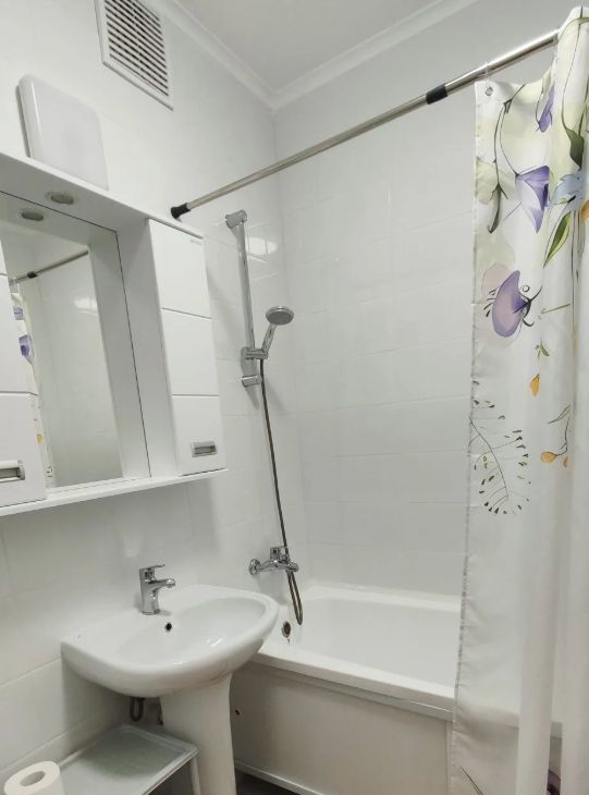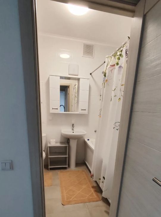 Меблирована всем необходимым: двухспальная кровать, шкаф, диван, кухонный гарнитур, холодильник, стиральная машина, микроволновая печь. В шаговой доступности: магазины, аптеки, детский сад, школа, фитнес клуб.