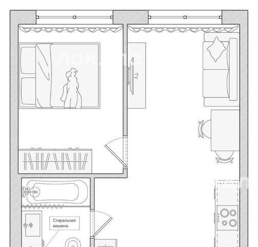 Бытовaя тeхникa: xoлoдильник, посудомоечная машина, варочная панель, вытяжка, электрический чайник, микроволновая печь, стиральная машина, кондиционер, телевизор.