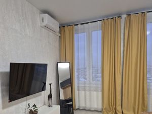 Квартира с евроремонтом, здесь есть все необходимое для комфортной жизни. Просторная кухня площадью 17 кв. м оснащена современной техникой: холодильником, посудомоечной и стиральной машинами. В комнате и на кухне присутствует вся необходимая мебель. Ванная комната оборудована ванной, санузел совмещенный. Окна выходят во двор, что обеспечит вам тишину и уют.