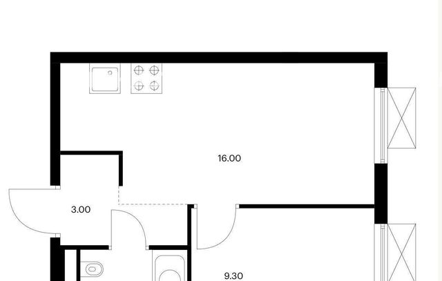 Евро 2-комнатная (кухня-гостиная и спальня).