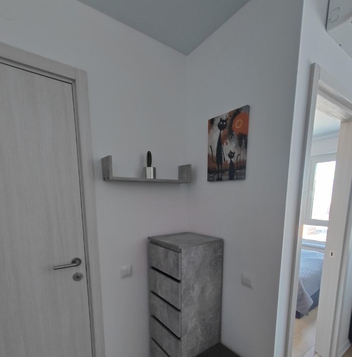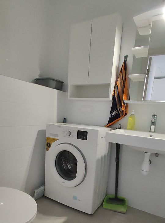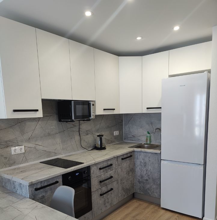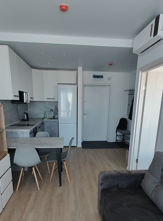 Квартира оснащена всей необходимой мебелью и техникой: есть посудомоечная и стиральная машины, холодильник и кондиционер.