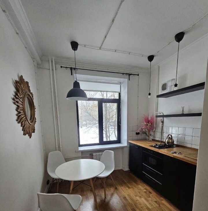 Однушка в московской сталинке — с трёхметровыми потолками, толстыми стенами и тишиной, которую сложно найти в домах последних десятилетий. Изолированная комната 19,8 м², кухня с окном, раздельный санузел с ванной. Не студия — полноценная квартира, в которой есть личное пространство.