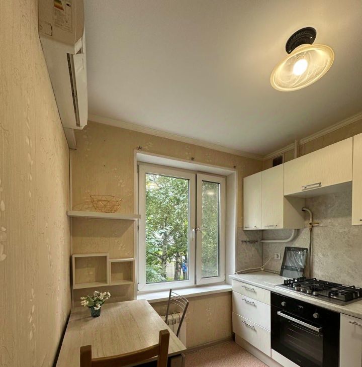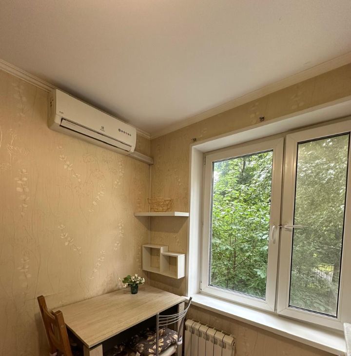 В квартире есть вся необходимая мебель и техника, 2 кондиционера (на кухне и в комнате), очень много мест для хранения, большой застекленный балкон, утопающий в зелени.
