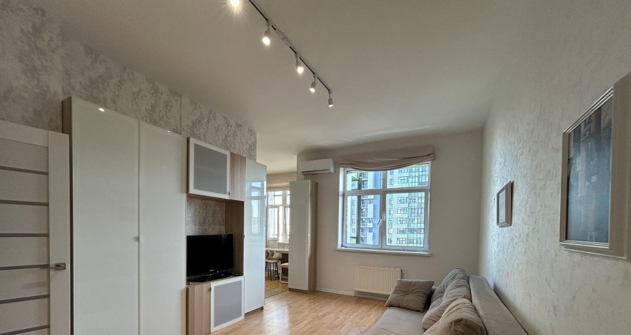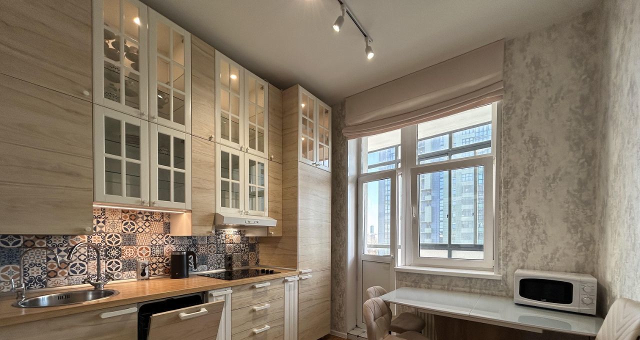 Квартира в отличном состоянии. Полное соответствие фото. Качественная мебель (еще ИКЕА) Подсветка на кухне. Выглядит классно. Есть посудомойка, кондиционер, фильтр для питьевой воды. Просторная лоджия. Окна выходят во двор, но и панорама города видна.