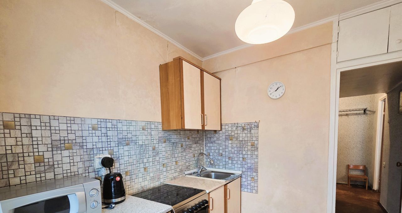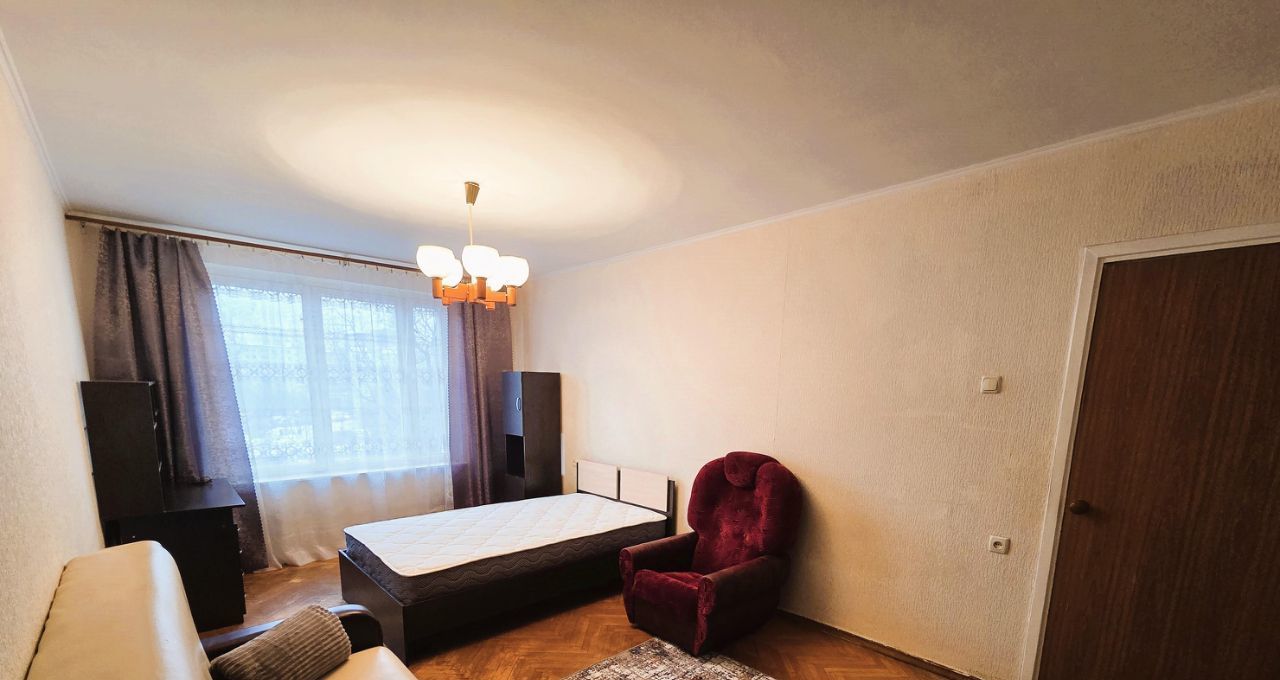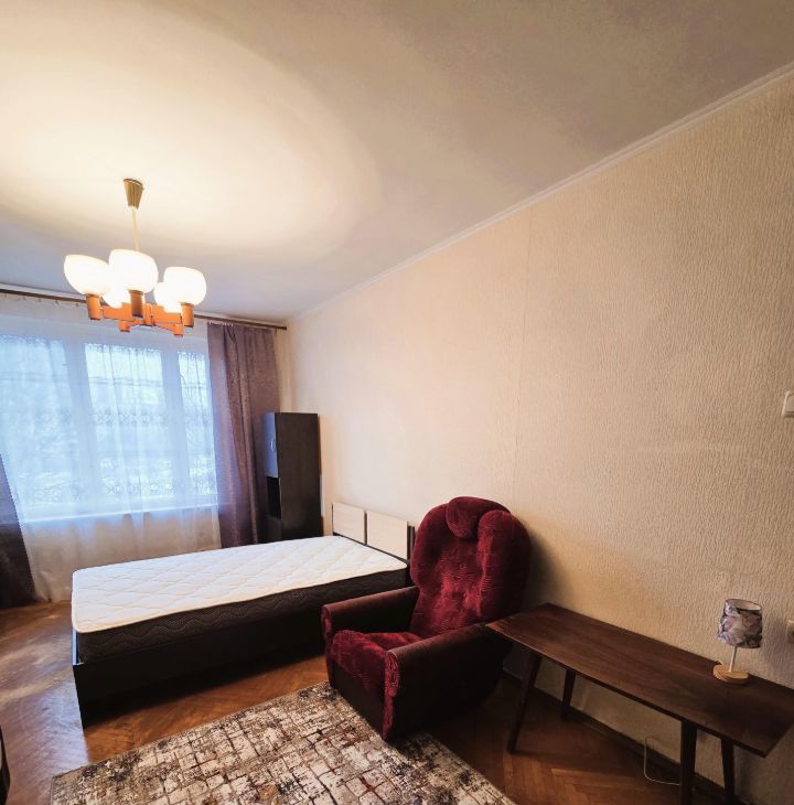 Сдаётся уютная однокомнатная квартира в 15 минутах пешком от метро Новые Черёмушки. Общая площадь квартиры составляет 33 кв. м, из которых 18.7 кв. м — жилая площадь, а кухня занимает 6.7 кв. м. Квартира находится на 5 этаже 9-этажного монолитного дома 1976 года постройки. Высота потолков — 2.64 метра.