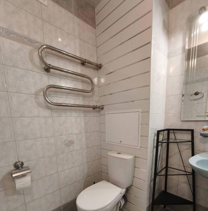 Квартира полностью готова к проживанию. Дом достаточно новый, квартира с необычной планировкой. Встроенная, функциональная кухня укомплектована всей необходимой техникой. Вход на балкон из кухни. Новая СМА. В комнате вместительный зеркальный шкаф-купе во всю стену, двуспальная кровать, письменный стол, кондиционер и так по мелочи. Просторный совмещенный санузел. В прихожей также есть большой шкаф-купе.