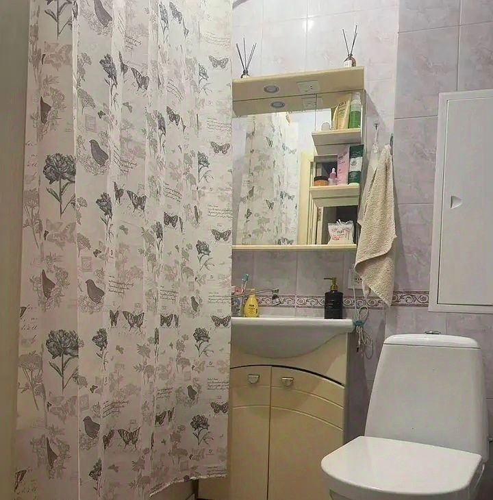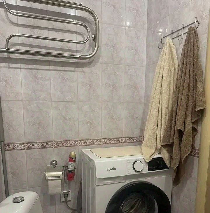 Санузел совмещенный, оснащен стиральной машиной. Лоджия застеклена и выходит на тихий двор. В квартире подключено кабельное/цифровое телевидение.