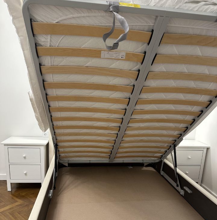 В просторной комнате грамотно зонирована живая площадь. Спальная зона: установлена кровать Аскона с ортопедическим матрасом Аскона и зоной ТВ и прикроватными тумбами.