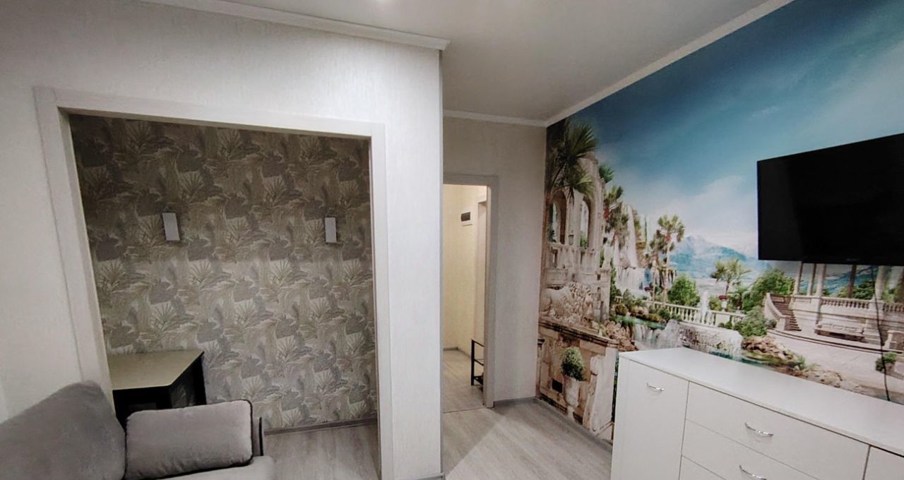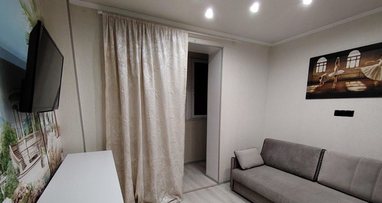Квартира с евроремонтом, полностью готова к проживанию. В комнате и на кухне есть вся необходимая мебель. Из техники: кондиционер, холодильник, телевизор, стиральная машины. Большая гардеробная, проведен интернет. Раздельный санузел. Окна выходят во двор, что обеспечивает тишину и спокойствие.