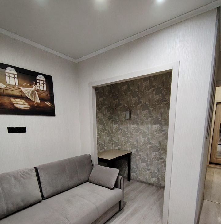Квартира с евроремонтом, полностью готова к проживанию. В комнате и на кухне есть вся необходимая мебель. Из техники: кондиционер, холодильник, телевизор, стиральная машины. Большая гардеробная, проведен интернет. Раздельный санузел. Окна выходят во двор, что обеспечивает тишину и спокойствие.