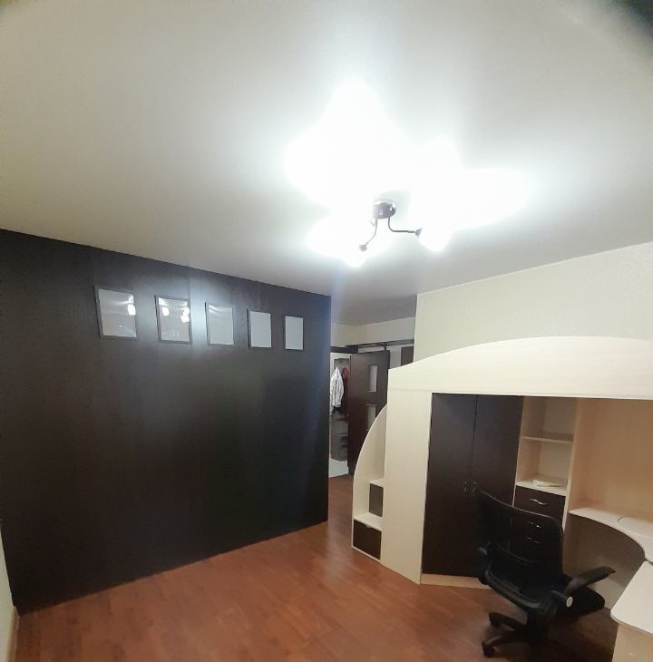 Квартира полностью мебелированная и готова к заселению (Кухонный гарнитур, стол обеденный, табуретки, Варочная панель, духовой шкаф, холодильник, вытяжка, микроволновка, двухспальная кровать, большой шкаф для хранения вещей, комод. книжный шкаф и полка, кровать-чердак для ребенка, снизу шкаф и компьютерный стол с ящиками, телевизор большой, кондиционер, стиральная машинка).