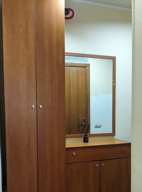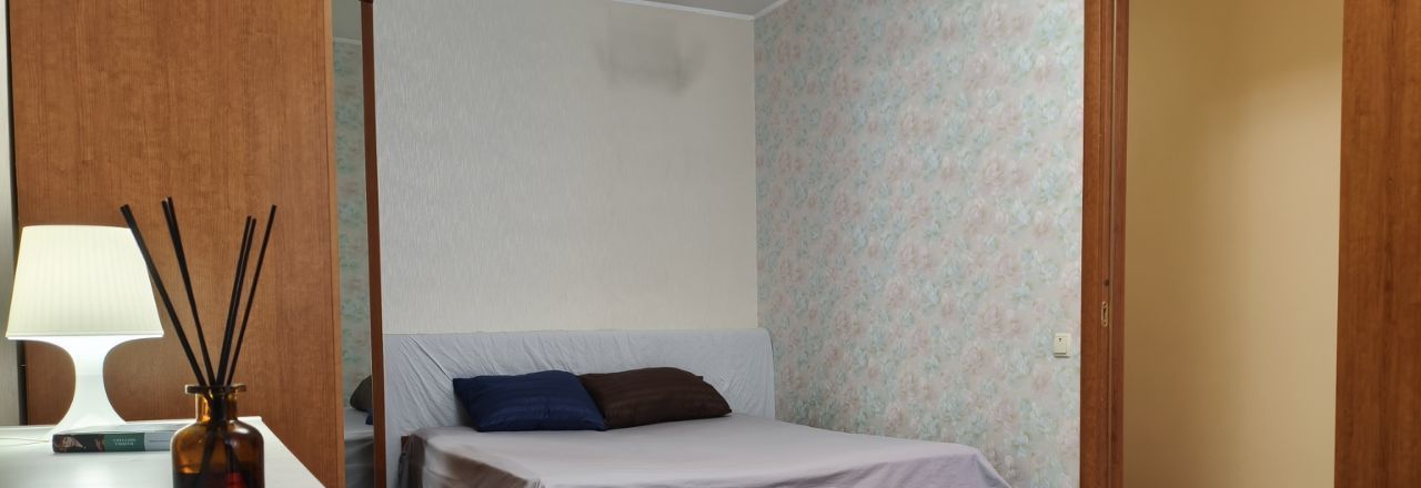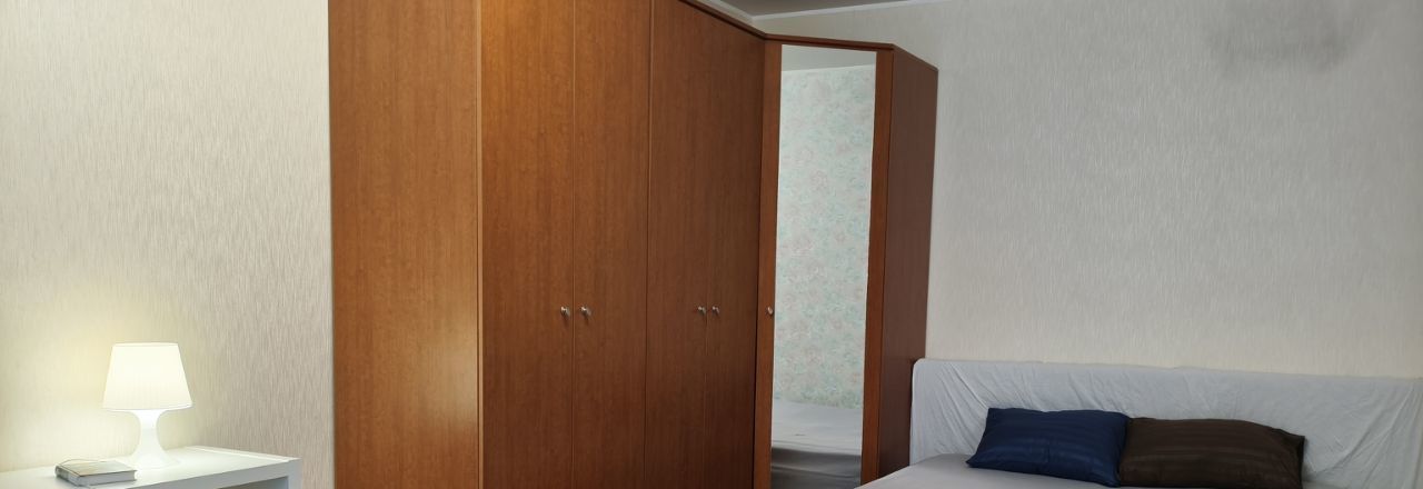 В квартире двуспальная кровать, вместительные шкафы в комнате и коридоре под сезонную одежду. Балкон.