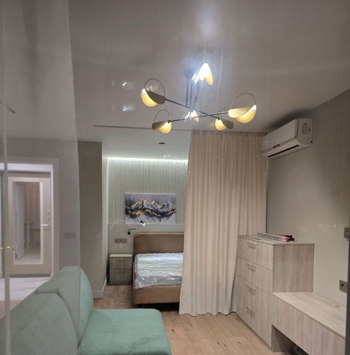 Сдаю квартиру с новым дизайнерским ремонтом и мебелью. Все есть для комфортной жизни, планировка и наполнение продуманы до мелочей для современный комфортной жизни. Зона спальни отделена портъерами. Мест для хранения очень много. Окна во двор. Тихий, зеленый район.