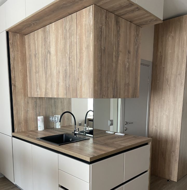Кухня со встроенной техникой ( холодильник, духовой шкаф, варочная панель, стиральная машина).