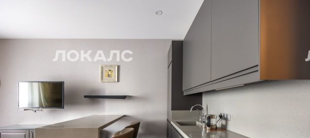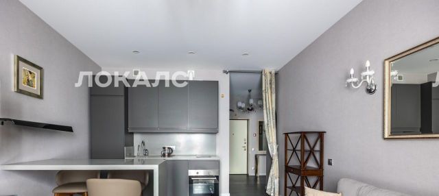 Кухня-гостинная 25 кв.м., спальня 15 кв.м., 2 гардеробных комнаты, совмещенный санузел. Дизайнерский ремонт, полностью меблирована и укомплектована всей необходимой бытовой техникой.