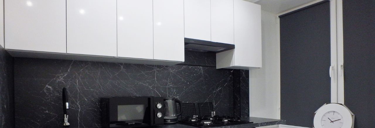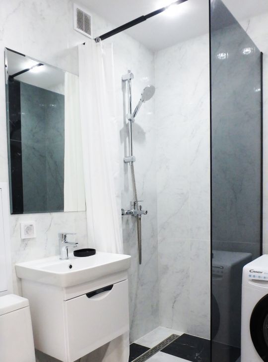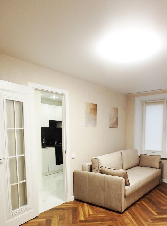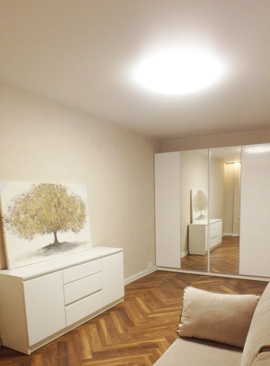 ВСЯ МЕБЕЛЬ, ТЕХНИКА и сантехника -НОВАЯ. Весь ремонт выдержан в светлых тонах, Зона кухни в чёрно-белой гамме :кухонный гарнитур с белыми фасадами(глянец),обеденный стол белого цвета оттеняются столешницей и фартуком "под черный камень", стульями из черного кожзама, а также техникой в виде выдвижной вытяжки, варочной панели и духового шкафа ,чайника, холодильника ( всё НОВОЕ). Комната оборудована всем необходимым, при этом остаётся достаточно свободной. Новый раскладной ДИВАН превращается в полноценное двуспальное место, несколько КОМОДОВ и 4-х створчатый, зеркальный ШКАФ-КУПЕ представляют собой вместительную систему хранения вещей. В коридоре также продуманное оборудованное пространство с открытой вешалкой и тумбой для обуви, дополнительным шкафом для верхней одежды и узким шкафом с зеркалом для мелочей. Потолочная подсветка в натяжных потолках, глянцевая напольная плитка и глянцевые поверхности мебели добавляют нарядности ,уюта и шарма. Развитая инфраструктура района, близость к двум станциям метро и парковой зоне делают конкурентным данное предложение на рынке аренды жилья.