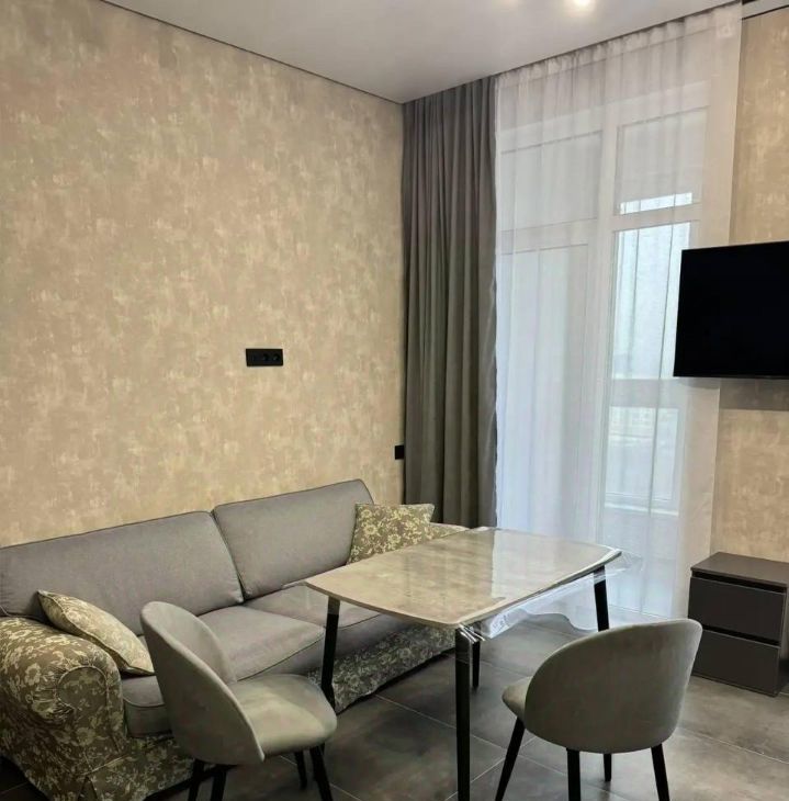 Сдаётся стильная квартира с евроремонтом в современном доме 2022 года постройки. Общая площадь квартиры составляет 31 кв. м, из которых 20 кв. м жилая зона. Квартира расположена на 35 этаже 43-этажного здания, а окна выходят во двор, что обеспечивает тишину и уют. Высокие потолки в 3.1 метра добавляют простора и света.