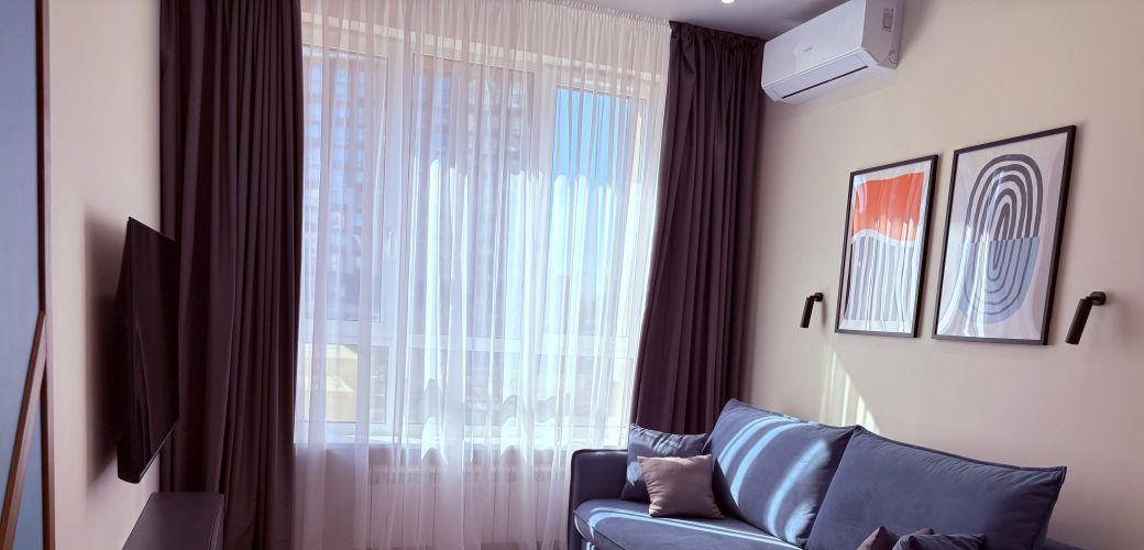 В квартире большое количество мест хранения, установлены 2 кондиционера, проточный водонагреватель. Имеется пылесос, гладильная доска, сушилка для белья, утюг, 2 телевизора, посуда, полотенца, одеяло, подушки, постельное белье.
