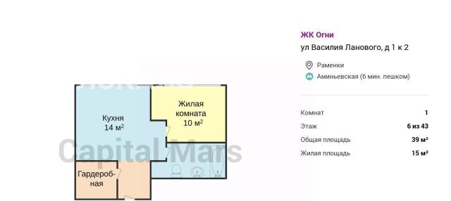 1-к кв. Москва ул. Василия Ланового, 1к2 (39.0 м²)