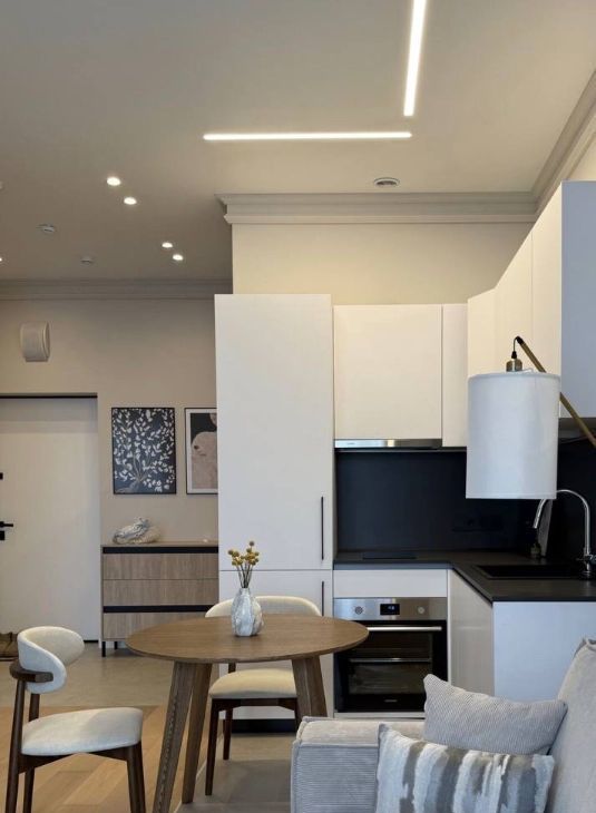 Сдается светлая однокомнатная квартира (евродвушка) на 7 этаже дома бизнес-класса 2024 года постройки. Квартира с дизайнерским ремонтом, оформленная в нейтральных тонах, полностью укомплектованная мебелью и всей необходимой бытовой техникой. Квартира новая после ремонта, в ней никто не жил.