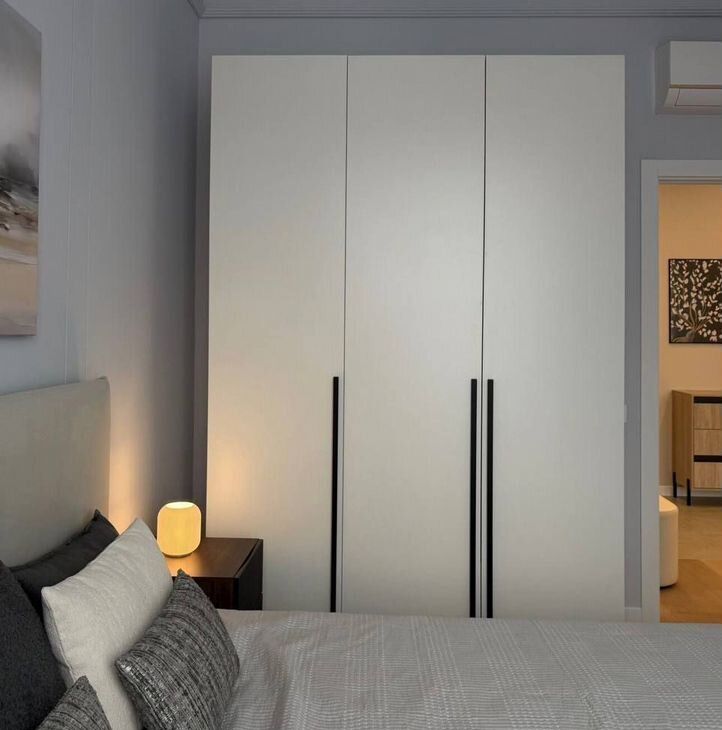 В квартире есть гардеробная, что обеспечивает дополнительное место для хранения. Дом оснащен двумя пассажирскими лифтами и открытой парковкой во дворе. Район новый, рядом с домом расположен парк.