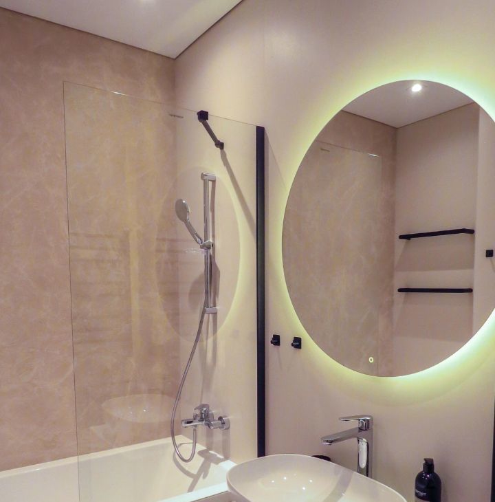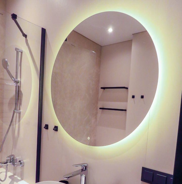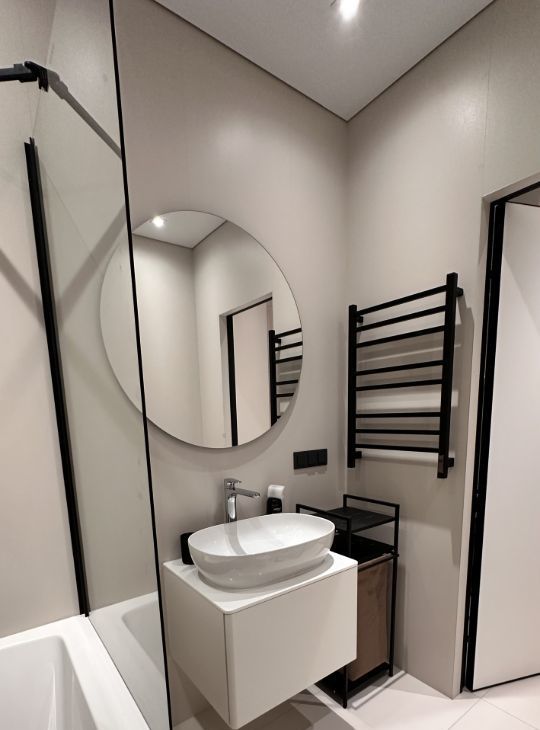 ВАННАЯ КОМНАТА В СВЕТЛЫХ ТОНАХ — идеально подходит для вечернего релакса; — большое зеркало с подсветкой три режима .